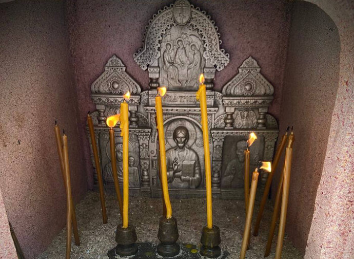 Возле часовни установлен стол со свечами. Все желающие могут помолиться и зажечь свечи в память о трагедии.